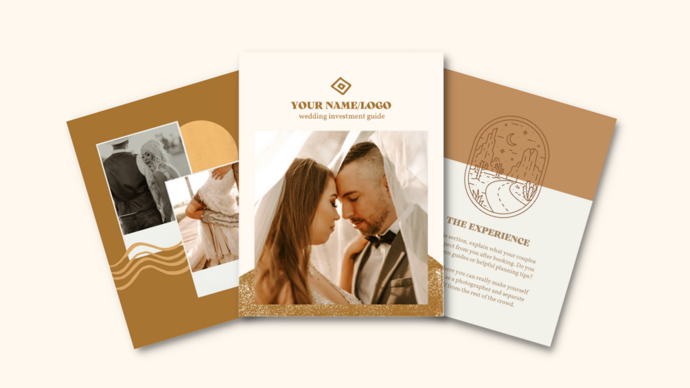Send over your wedding prices & packages to clients with confidence using this trendy, desert themed investment guide template. Not only will this guide make you and your business look super legit, but it's going to help you stand out from the rest of the photographers who are just sending a 1 page pricing list (or nothing at all - yikes!)